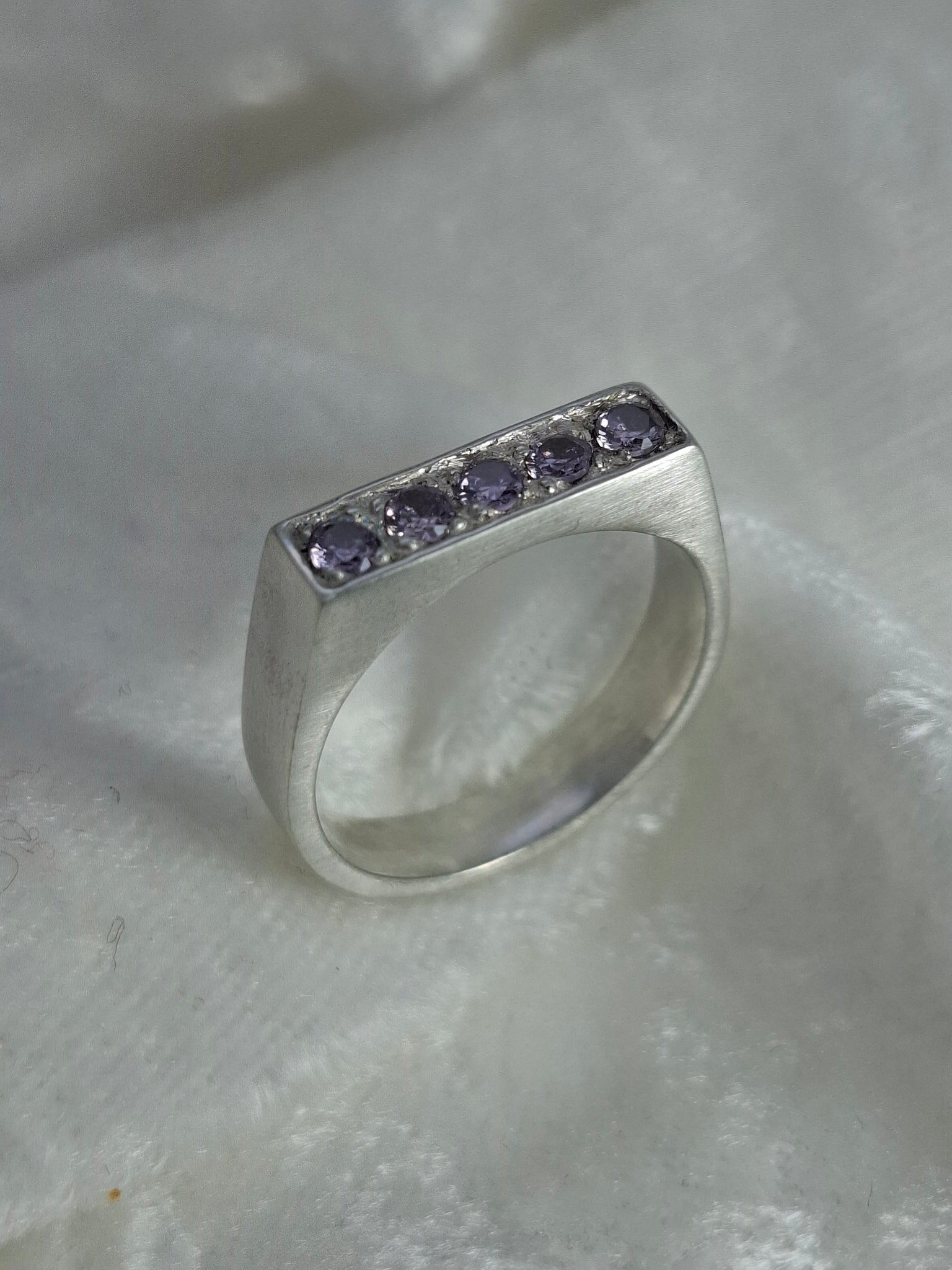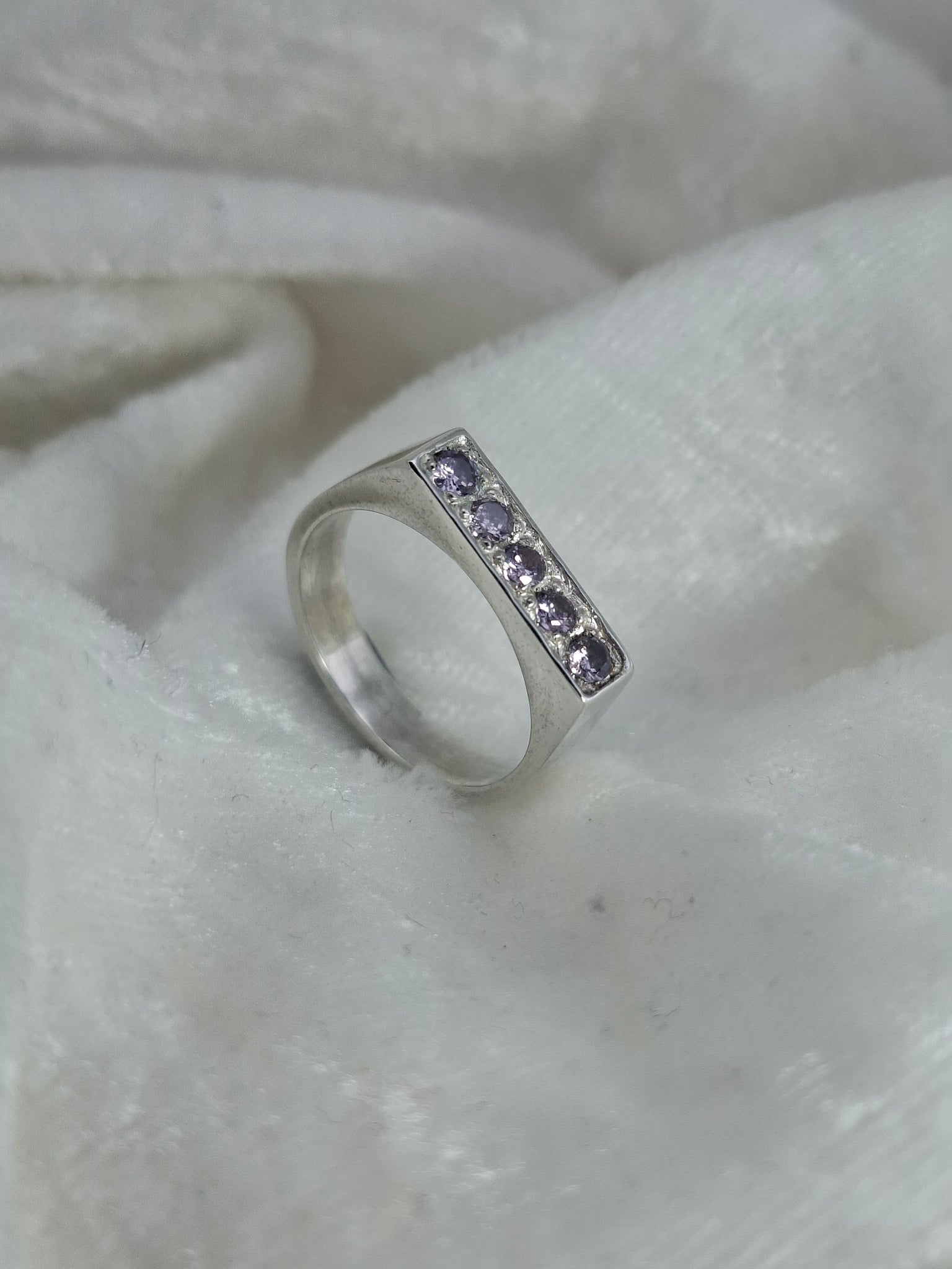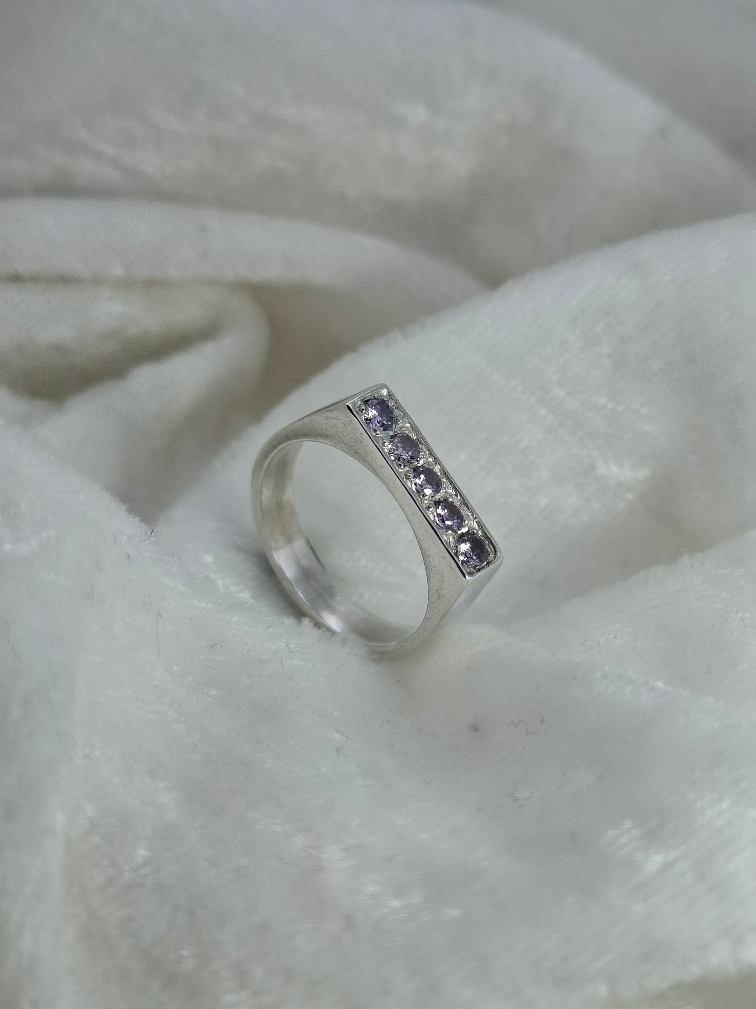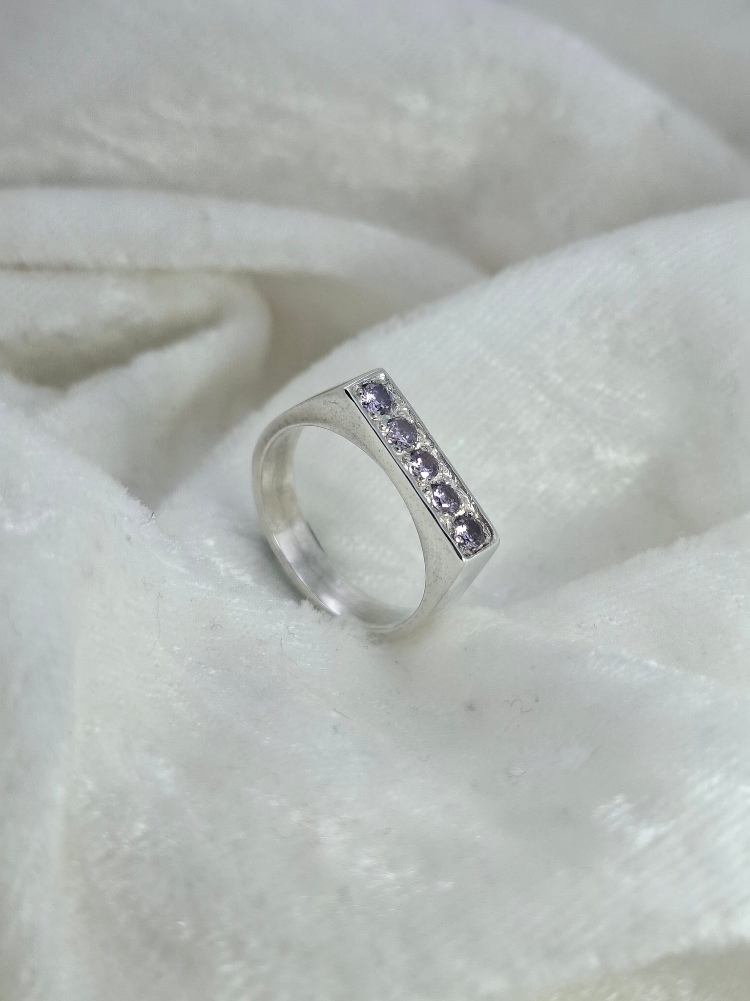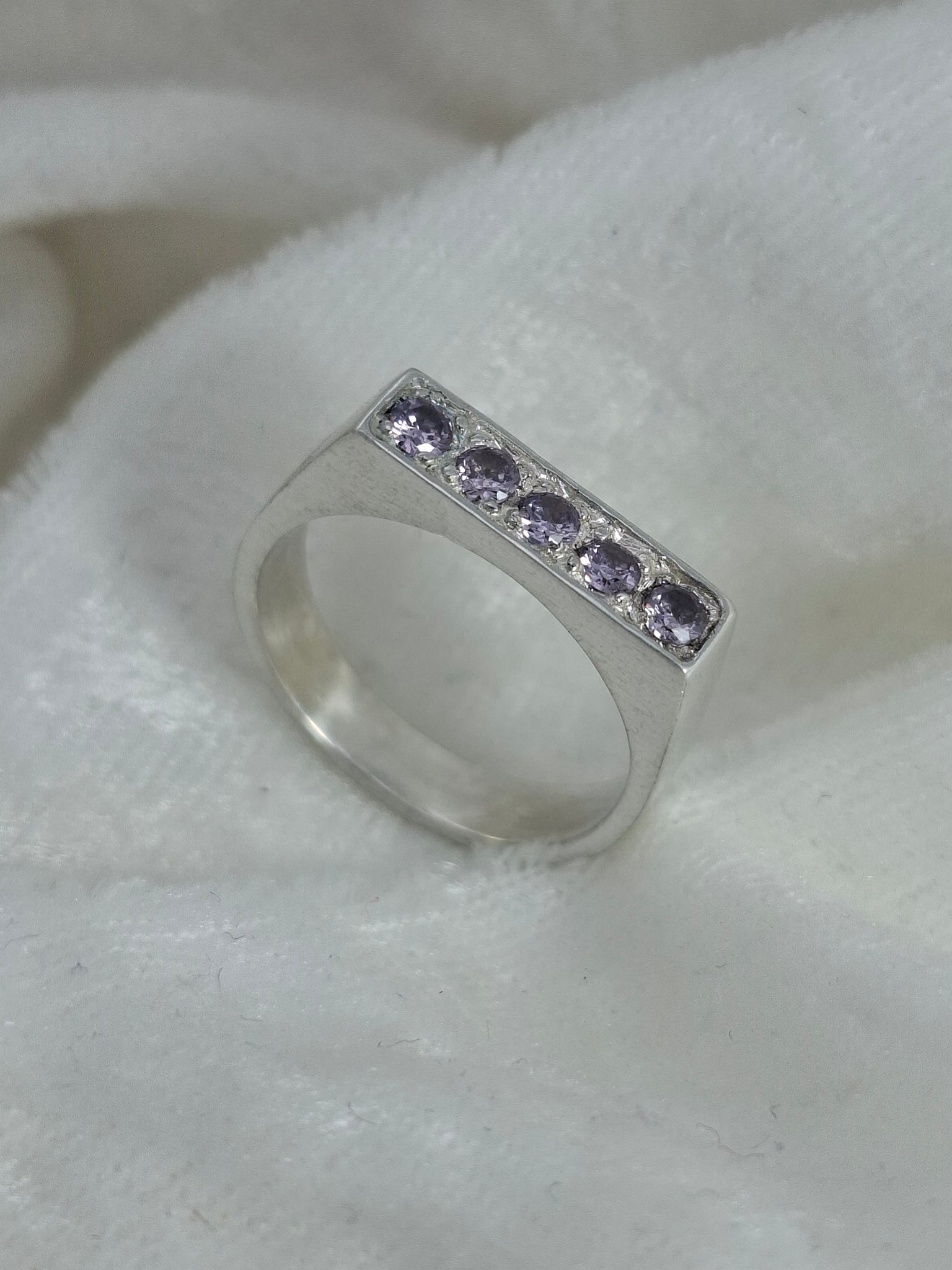 La diferencia está en el toque final: una línea de cinco circonitas que aporta luz y ese puntito especial que hace que el anillo destaque sin dejar de ser discreto y fácil de llevar cada día.