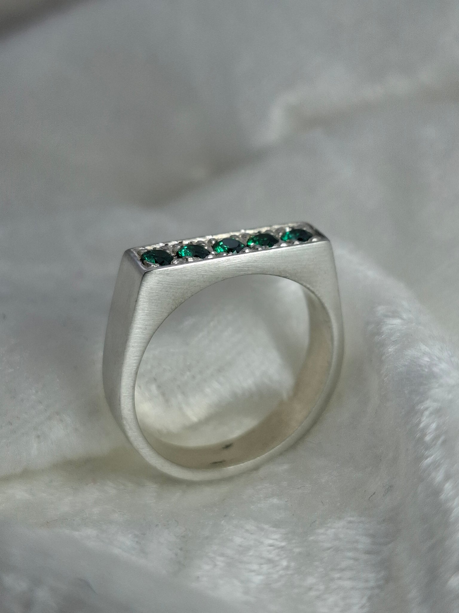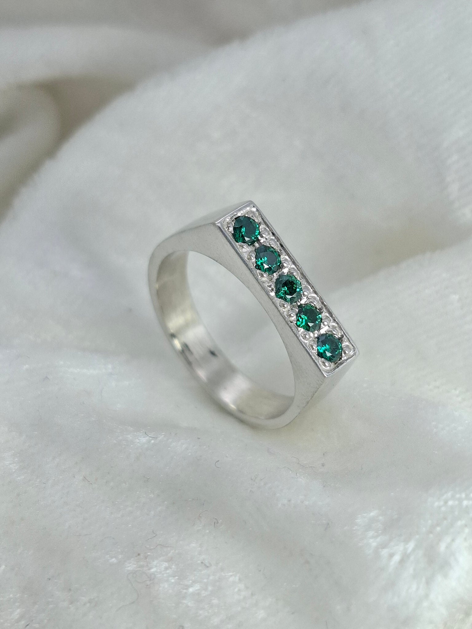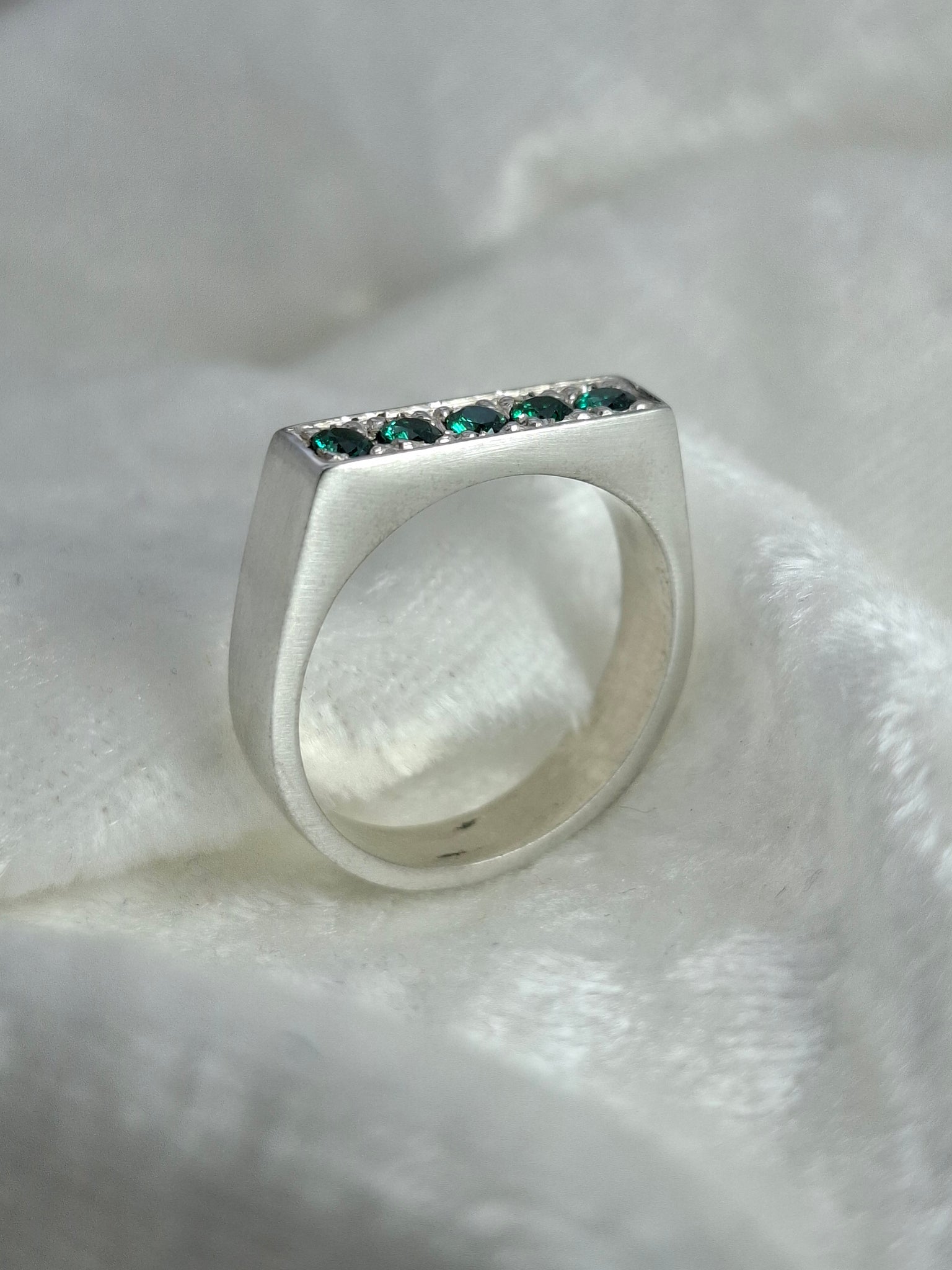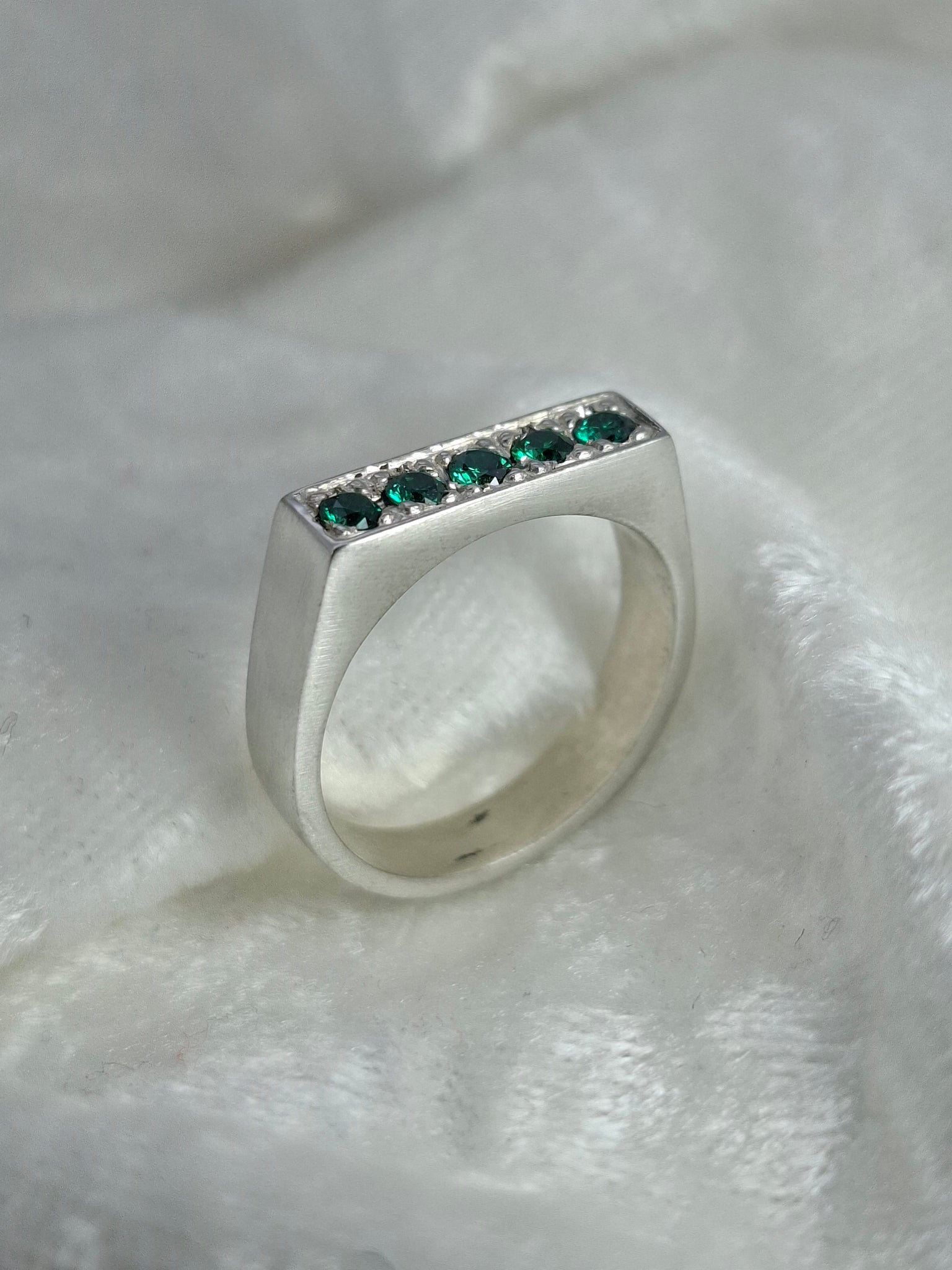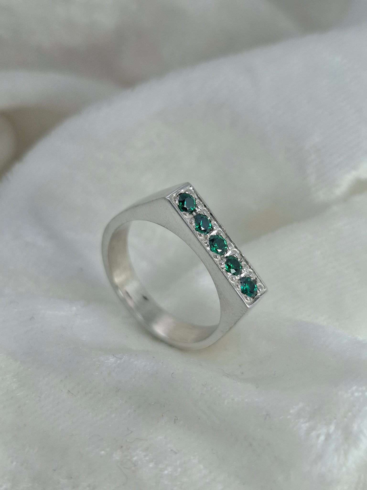 La diferencia está en el toque final: una línea de cinco circonitas que aporta luz y ese puntito especial que hace que el anillo destaque sin dejar de ser discreto y fácil de llevar cada día.